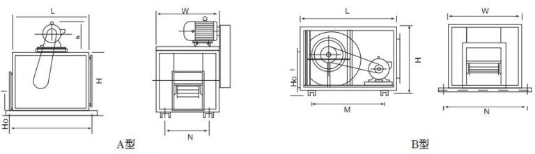 2、DT系列柜式離心風機既可排風,又可送風,分A、B兩種類型供用戶選用。