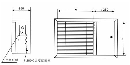 | 板式排煙口 | 電訊號開啟,手動(或遠距離)開啟。輸出動作電訊號,聯動排煙風機,用于排煙房間頂棚及墻上安裝,可設280℃重新關閉裝置。 |